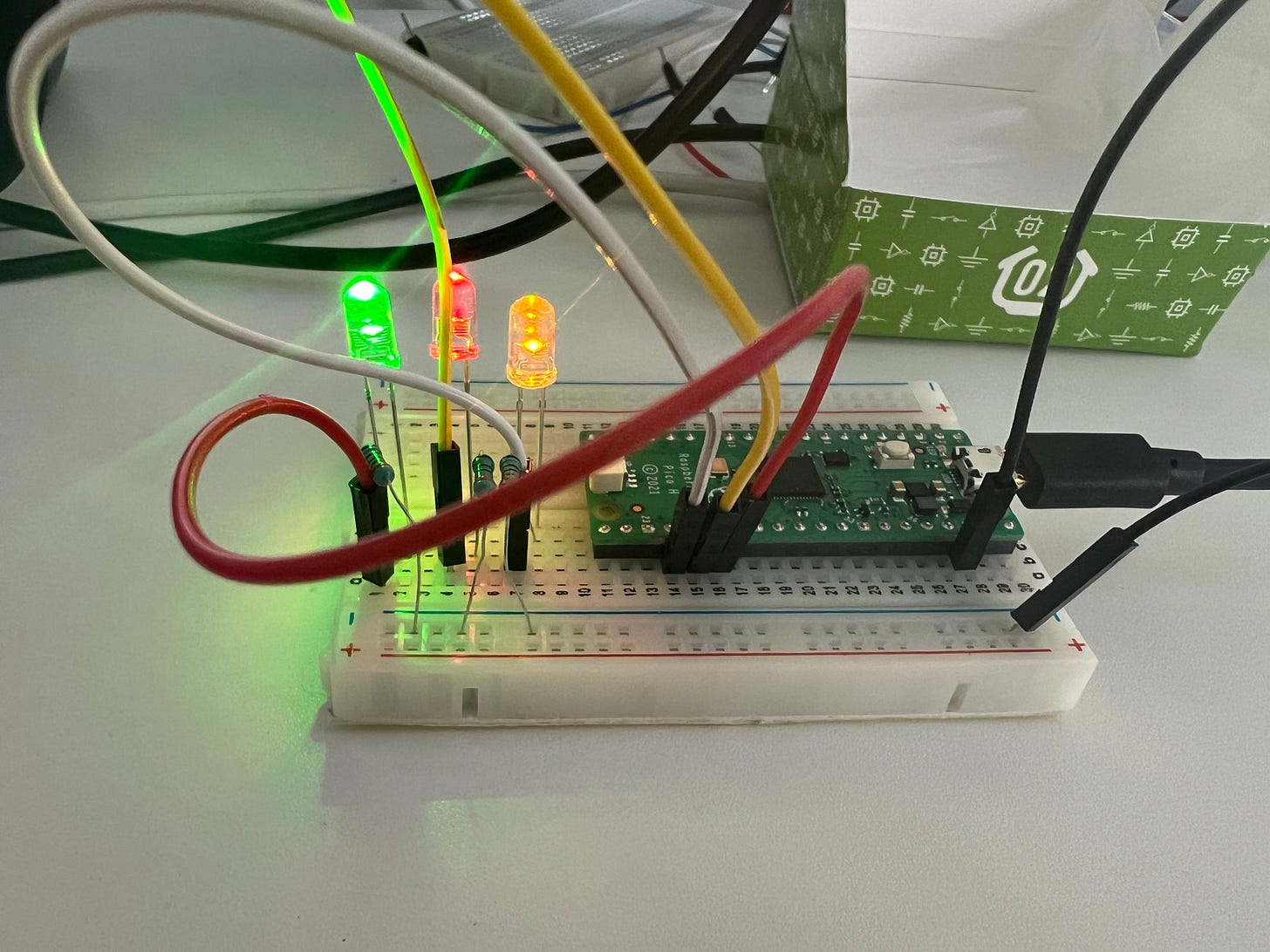 Lighting up coloured LEDs and light sensors via the Pico